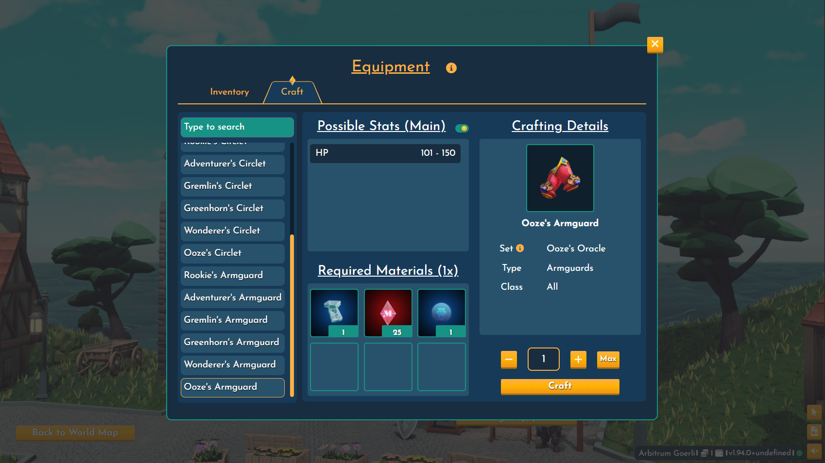 Players can craft Equipment from Heroes Quarters > Manage Equipment. All information regarding crafting requirements and outcomes can be seen from the in-game UI.