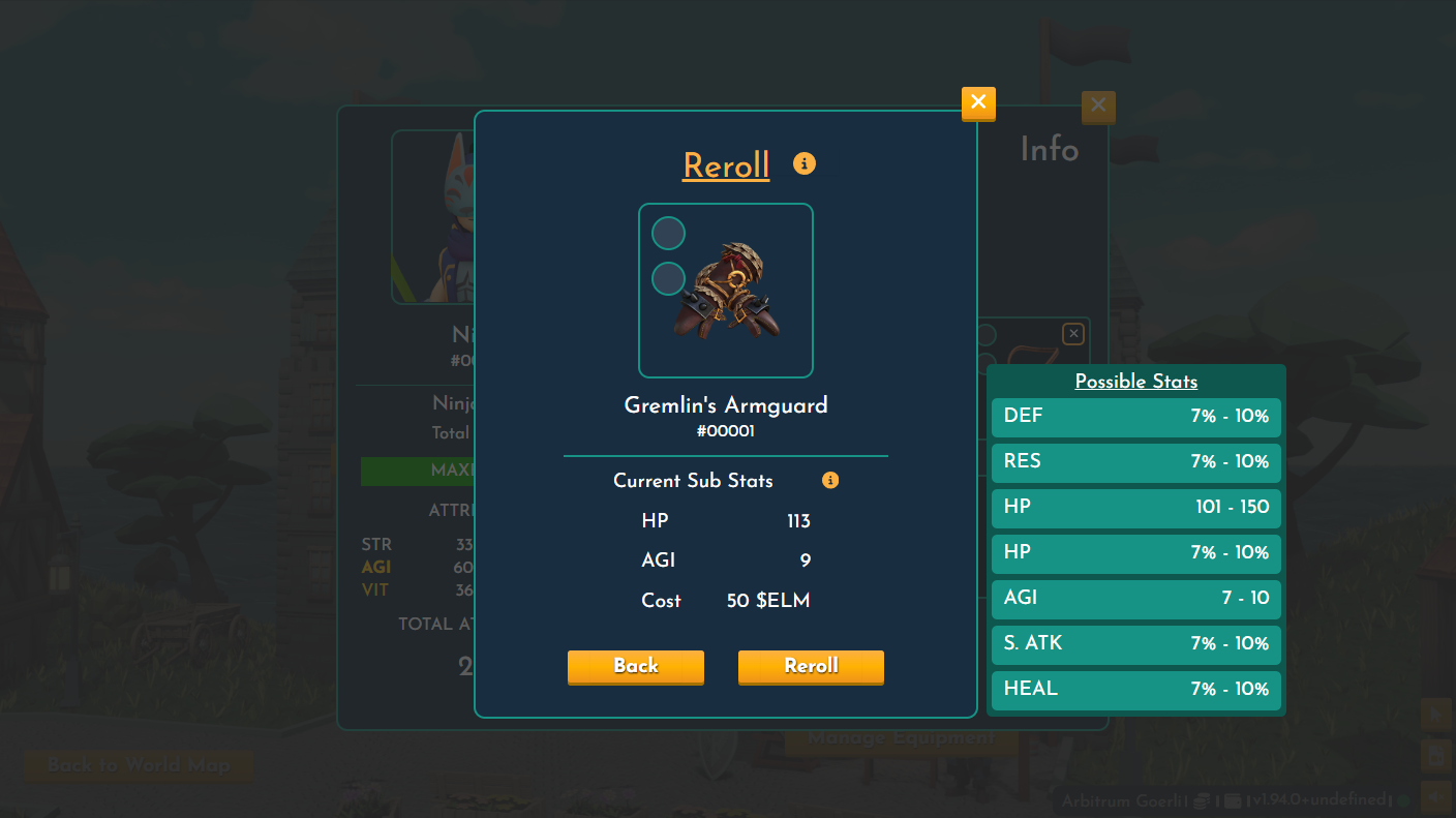 Equipment can be enhanced using $MEDALS, $ELM, and Gems/Metals. There are 3 different ways to enhance a piece: Upgrade, Reroll, and Infusion.