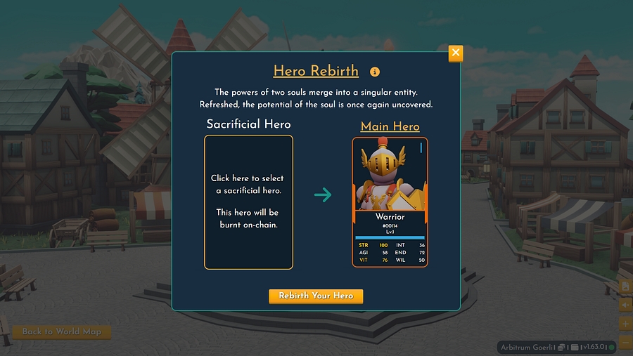 Head to the Town Square from the main menu and click on the Hero Rebirth feature.