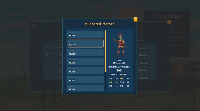 7. (optional) From My Bid History, you will be able to view past refunds and successful allocations. Click on a listing to view successfully allocated heroes for each bid!