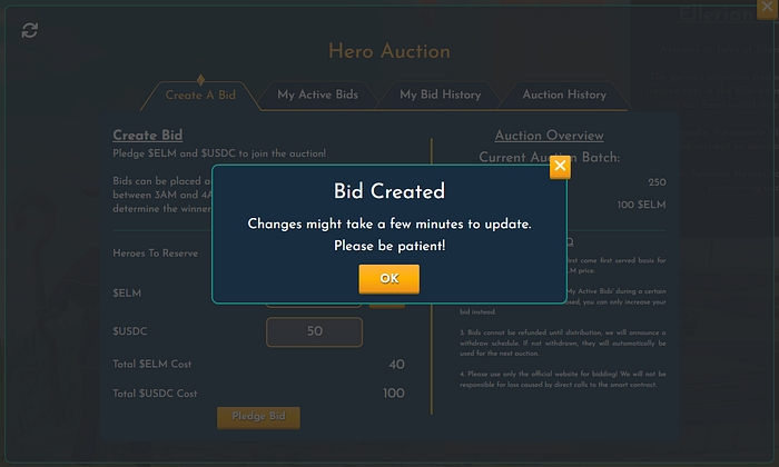 5. After creating a bid, wait for the allocation that happens on Sunday at around 4 AM UTC to receive your heroes if successful! (Or if you max bid, you will receive the hero instantly)