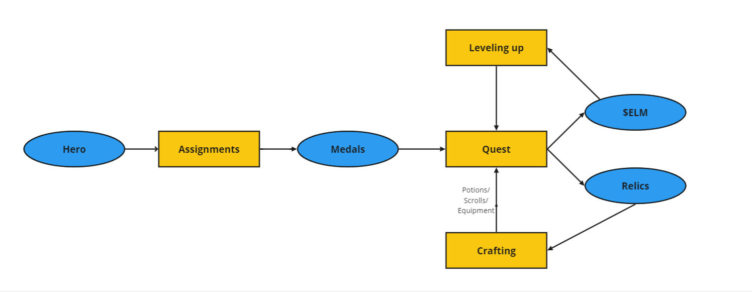 3. Send the Hero on [Quests ](https://docs.talesofelleria.com/gameplay-prologue/game-features/questing)using $MEDALS to earn $ELM (ERC-20) and Relics (NFTs)